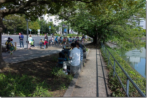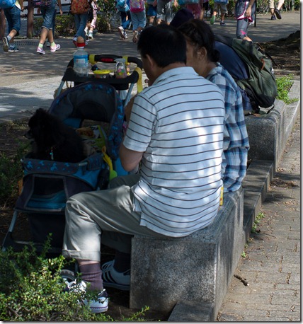 Erst einmal zum kaiserlichen Palast – und auf dem Weg dorthin viel uns natürlich der Hang der Japaner zum Skurrilen auf (was die dann sicherlich in Deutschland über uns genauso denken!). Haustiere (insbesondere Hunde) werden im Kinderwagen mit viel Spielzeug durch die Gegend gefahren und eben wie kleine Kinder verwöhnt.