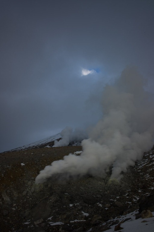 Noch mal in der Übersicht – im Hintergrund (in der Wolke) ist dann der eigentliche Berg. Wir stehen ja aktuell in der Caldera, die wohl 1739 beim Ausbruch (zu großen Teilen) weggesprengt wurde.