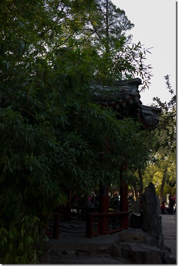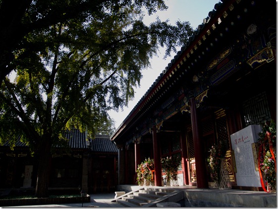 Nachdem wir feststellen mussten, dass das Kunstmuseum geschlossen hatte (nun gut, gehen wir eben morgen hin…), wollten wir eigentlich zur Pagode mit dem Taxi fahren. Wollten wir… Erst einmal hat kein Taxi gehalten, obwohl welche frei waren, dann waren keine frei, es war frustrierend. Als dann endlich ein Taxi hielt und wir einstiegen, zeigte ich unser Ziel und sie meinte irgendwie, dass sie da nicht hinfahren würde. War schon alles recht komisch – wir denken einfach, dass ihr das zu weit draußen war und sie dann schlecht zurückkommt. Das ist dann die Kehrseite einer wenig auf Kommerz ausgelegten Gesellschaft (zumindest im Bereich dieser Dienstleistungen) – da wird sicherlich noch ein weiter Weg zu gehen sein, das den Leuten klar zu machen… Aber egal, wir haben Ihr dann das Alternativziel gezeigt und das hat sie auch angesteuert Somit hat die Taxifahrerin entschieden, wohin wir gehen – auch recht. Also sind wir dann beim Palast von Prinz Gong gelandet – eigentlich hat ja ein Mandschu-Höfling sich die Anlage gebaut, da dann aber (wer immer da was gepetzt hat…) festgestellt wurde, dass kaiserliche Elemente verwendet wurden (Farbe / Form / Material – keine Ahnung), wurde der Besitz eingezogen und später dem Prinz zugewiesen. Der Höfling dürfte wohl auch experimentell gefühlt haben, wie es ist, mit einem Löffel im Sumpf zu Korea auszuharren