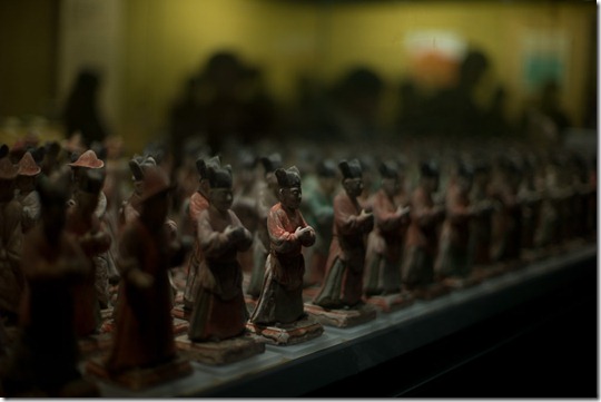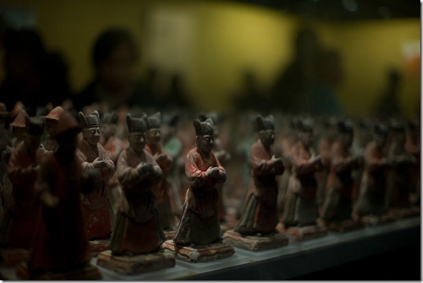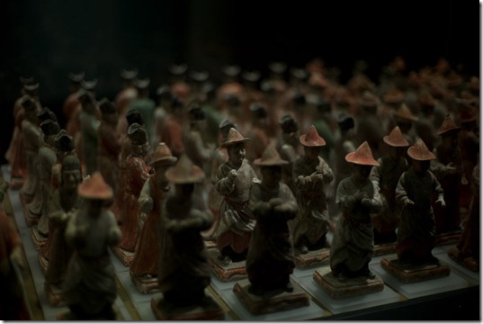 Die meisten Exponate (und auch Fotografien) sind aus der Tang-Zeit (ca. 7. – 10. Jahrhundert), allerdings auch etwas Han, streitende Reiche und Song. Aber die Blüte der Stadt war eben Tang und daher auch die Ausprägung.