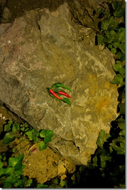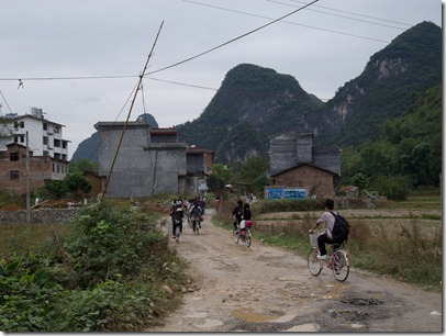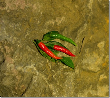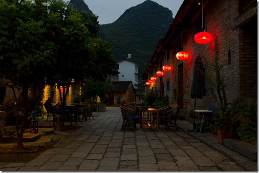 Unsere Beute des Raubzuges – hier wird nämlich überall Chili angebaut und da die anderen Gäste (fast) alle nur das fade europäische Essen nehmen (Banausen…) würzen wir etwas nach. Vor allem bestellen wir die ganzen lokalen Spezialitäten, was den Koch natürlich freut. Wer ist schon Pizza in China auf dem Land – Holländer!