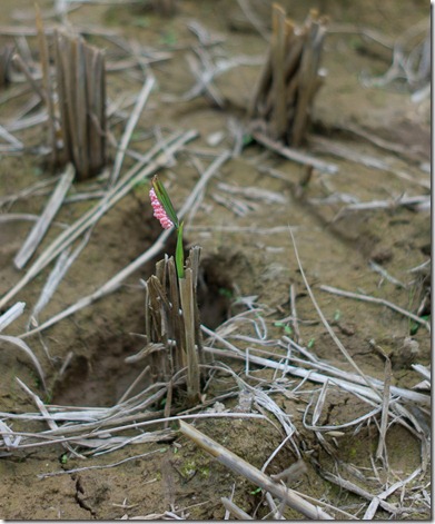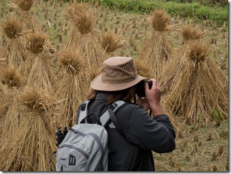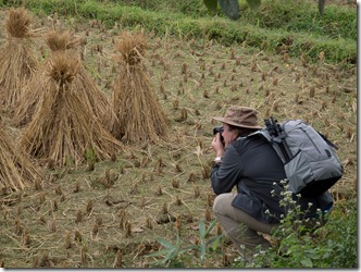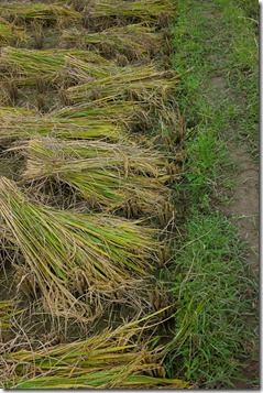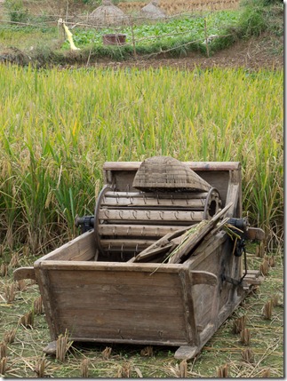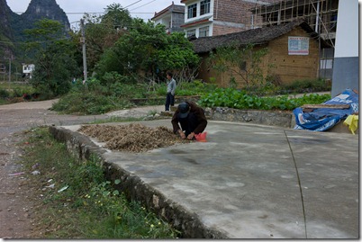 Alte Männer trennen Soja (denken wir) aus dem Schnitt und die Häuser sind schon stellenweise in einem sehr guten Zustand