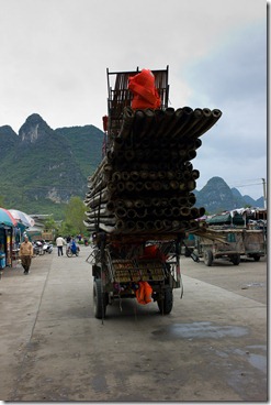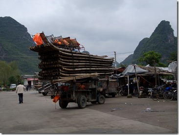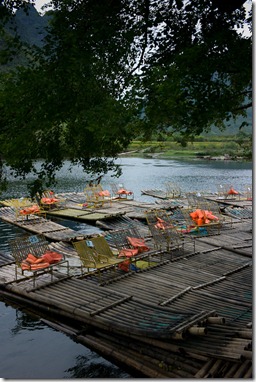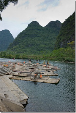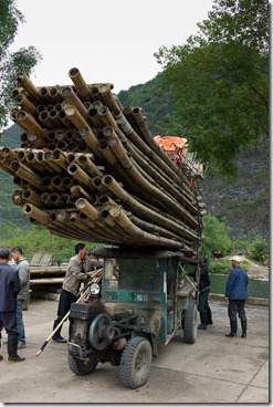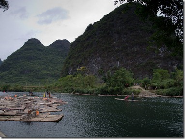 Dann runter zum Fluss und an der Floßlende dem munteren Treiben zugeschaut. Also das Bambusflösschen lassen wir mal lieber…