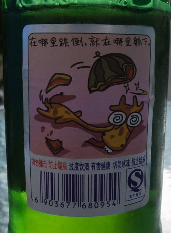 Und die Touristen hocken darunter und genießen ein Bier (das Wetter war wirklich sehr warm an dem Tag – so 27°, allerdings abends dann sehr schnell runter auf 13). Wir haben uns die ganze Zeit auch überlegt, welche Nebenwirkungen das Bier wohl haben mag, wenn man solche Aufkleber braucht. Die Spekulationen waren ja vielfältig – von “wenn Du das trinkst, wirst Du zum Elch und rutscht auf der Melone aus, so dass Du Dir die Zähne brichst” bis “wenn es Dir so schlecht geht, dann brauchst Du jetzt ein Bier”. Egal wie – es schmeckt! Was wir allerdings nicht versucht haben sind die Würste. Es gibt Dinge, die muss man nicht wirklich (ungekocht!) versuchen…