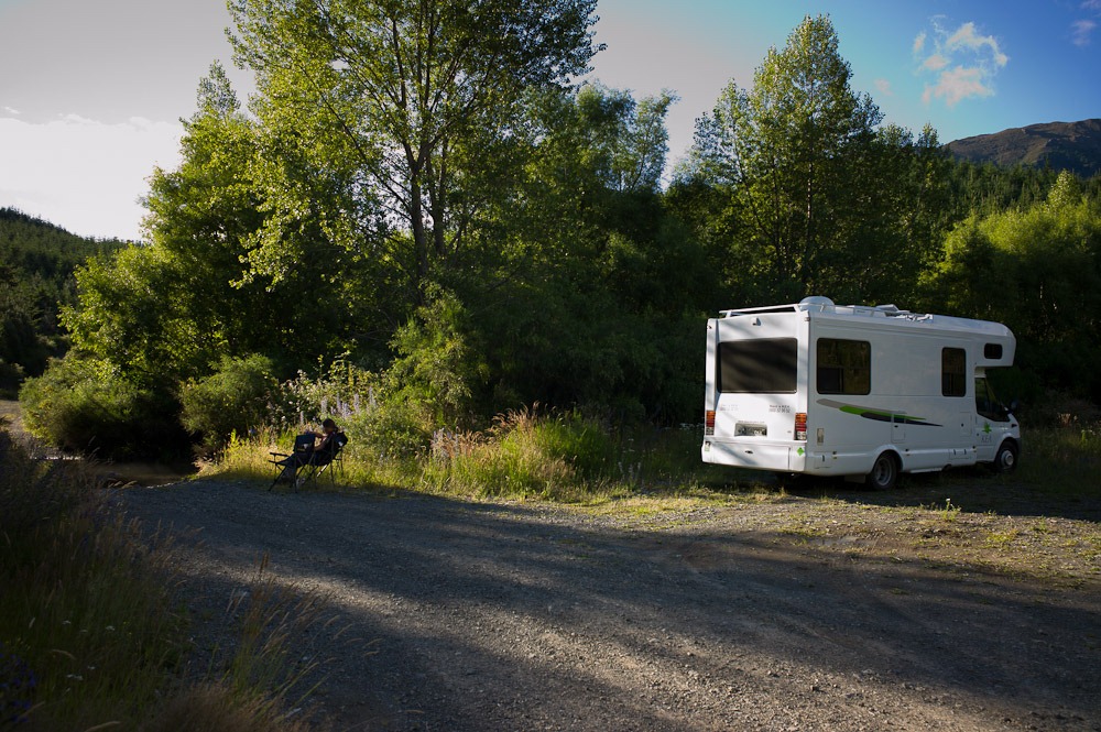Unser halbwegs legaler Standplatz – nichts außen herum, außer Bach und Bäume ![]()