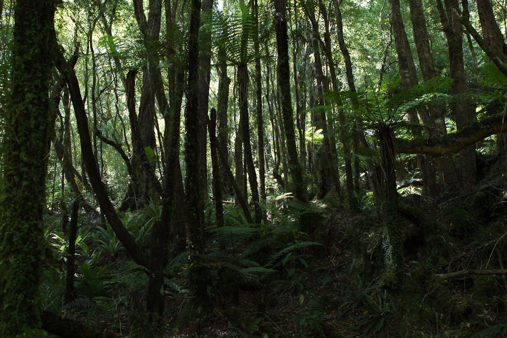 Am nächsten Mittag dann starteten wir dann gemütlich unsere Wanderung (16 km) durch den Urwald über den Bergrücken. Da es hier in Neuseeland keine gefährlichen Tiere gibt (nichts giftiges, keine Raubtiere