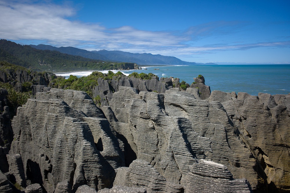 Nachdem wir dann von Arthur’s Pass weiter nach Westen fuhren, kamen wir nach Punakaiki im Paparoa National Park, wo wir (leider) auf einem normalen Campingplatz stehen mussten. Zum Glück nicht ganz so bieder wie in Europa (Licht aus um 22:00 und Morgenapell um 06:30), sondern etwas lässiger, eben “urlaubiger”, aber halt immer noch mit vielen anderen Menschen. Wie gesagt aber recht angenehm, da wir den Eindruck haben, dass man hier doch eher campen geht, weil man das will, als dass es einfach nur günstiger ist (mit dem Camper ist das nicht wirklich der Fall).