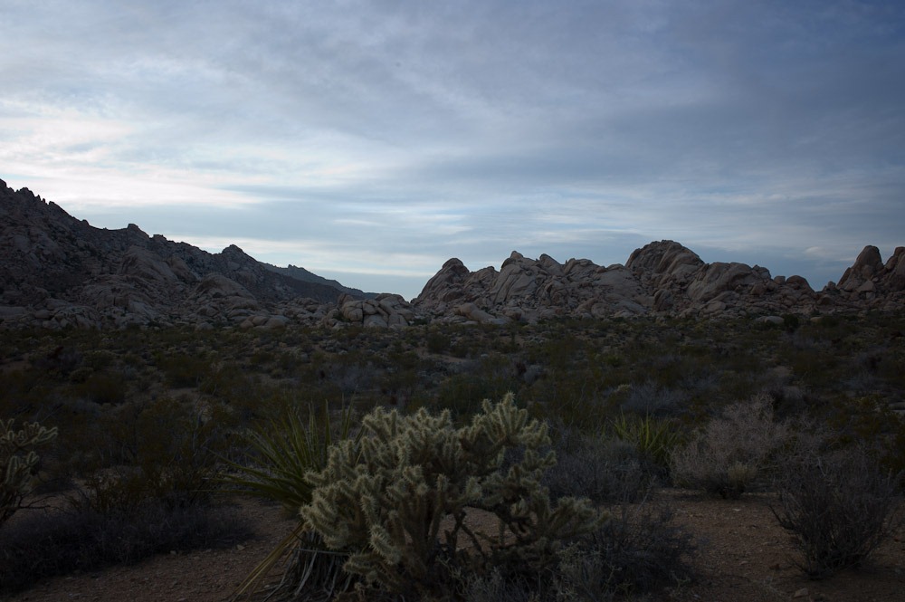 Der nächste Morgen dann fand mich überrascht – Nebel und null Sicht. Aber schön – und kalt… Tja, auf 1500 m ist es auch in der Wüste kühl – vor allem, wenn die Sonne noch nicht so richtig durchgekommen ist.