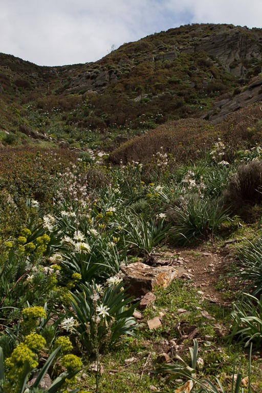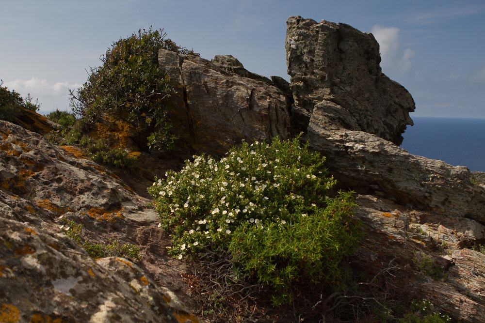 Der Anfang war schon gleich wunderschön mit tollen Blumen und vor allem absolut bizarren Steinformationen, die primär durch den Mistral hier so geformt und abgeschliffen sind (regnen tut es ja nicht wirklich extrem viel…). Dadurch, dass wir noch im Frühling sind (im Sommer wollte ich die Wanderung auch nicht wirklich machen – war auch so schweißtreibend genug), gab es eben sehr viel Vegetation.
