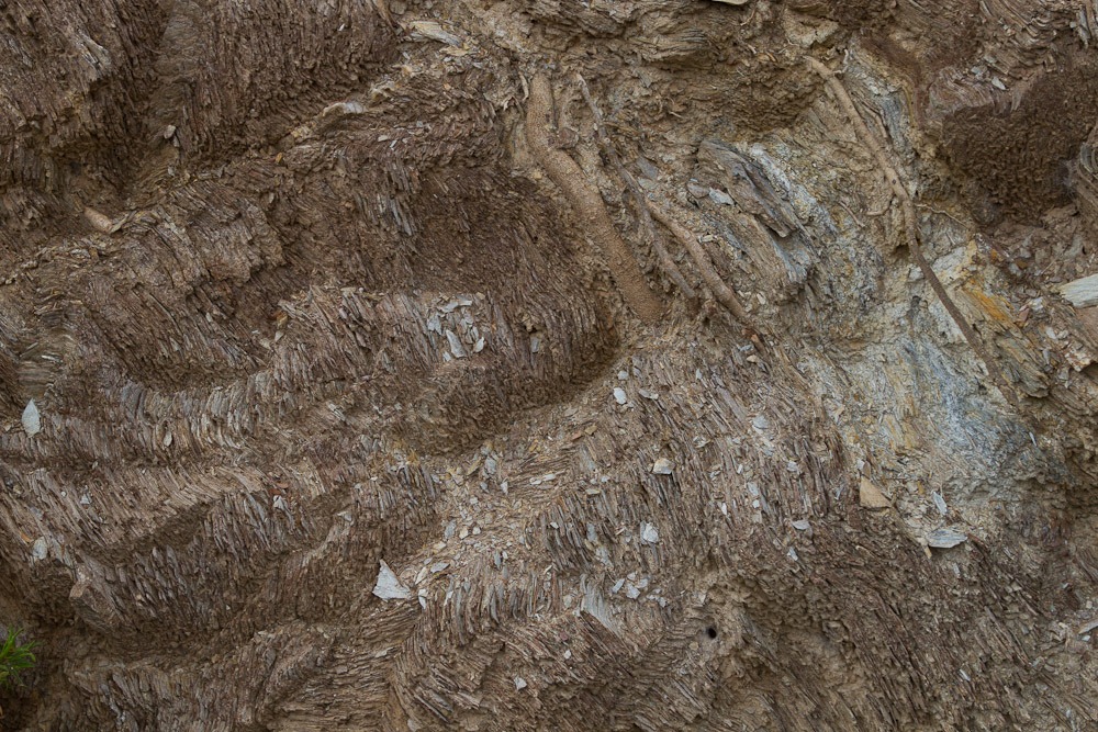 Die Gesteinsschichten sind fast schon wie nasses Papier geformt und gefaltet