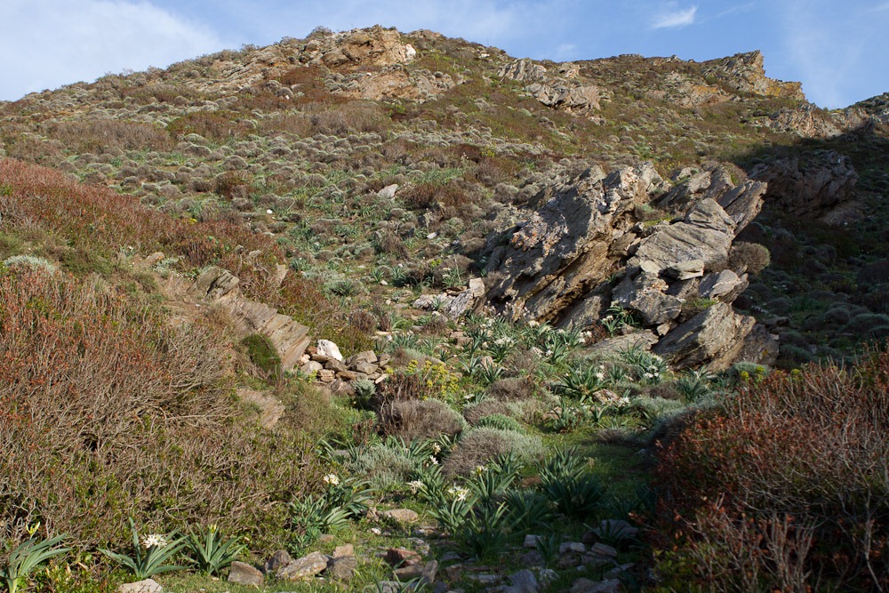 Bis man dann an der Bucht wieder weglos wird und rauf muss