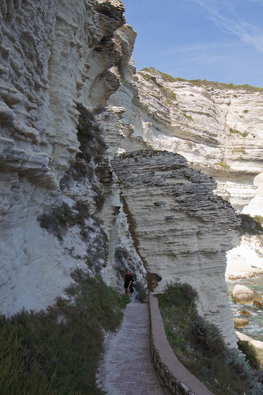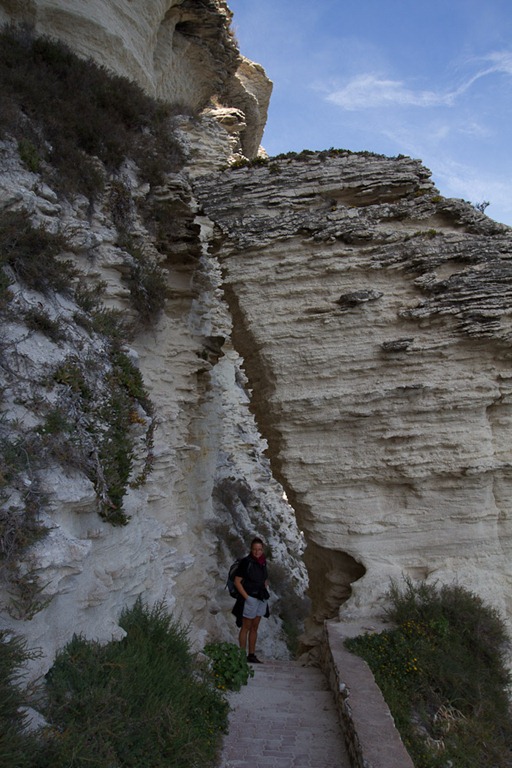 Bonifacio ist nicht wirklich sehr fußgängerfreundlich… Erst muss man vom Hafen hoch, dann wieder zur anderen Seite runter, wenn man die ganz schönen Felsen aufnehmen will. Der Weg hoch ist steil und sehr direkt…