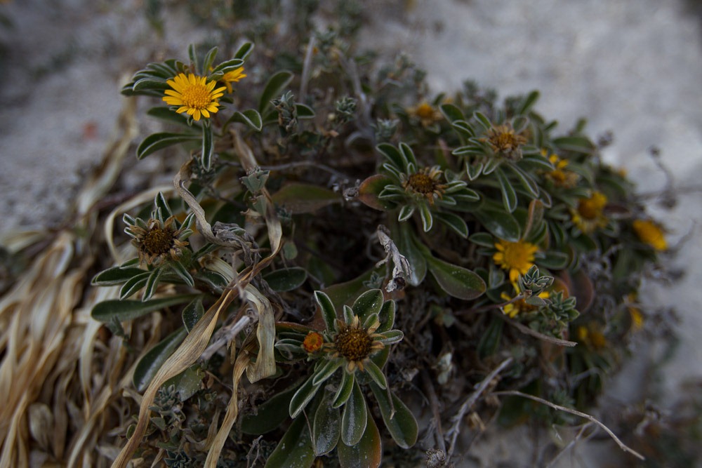 Die wunderschönen Blumen im Sand waren eine wahre Wohltat nach dem ganzen Grau und Weiß