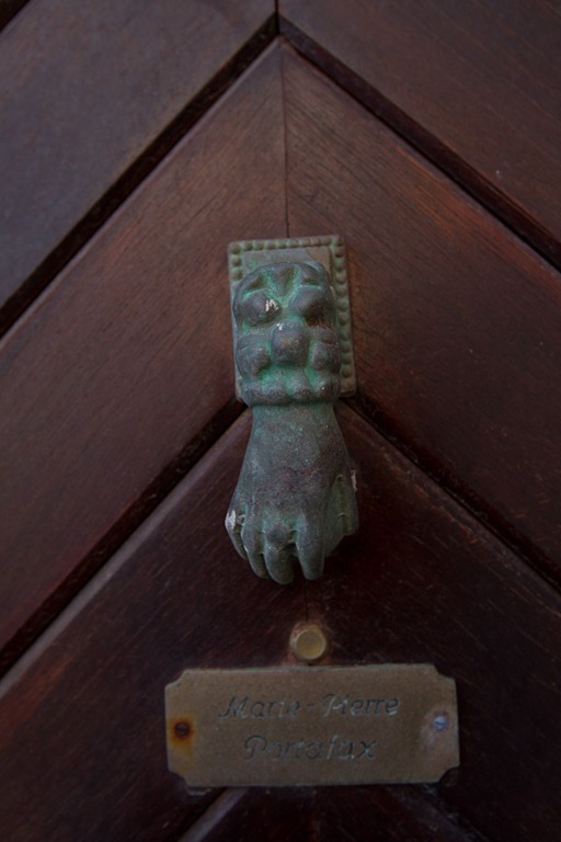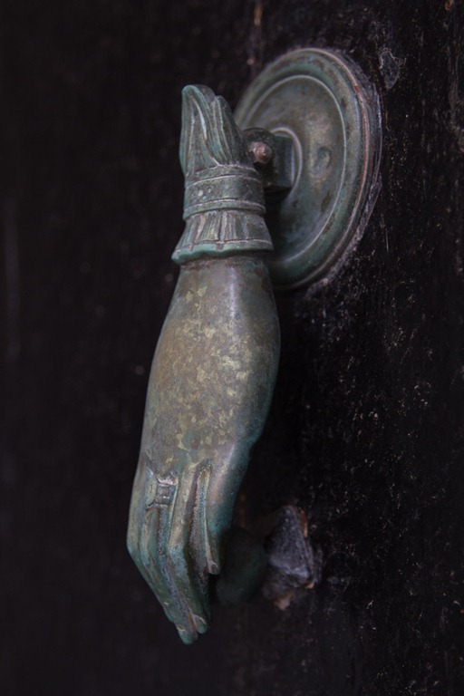Das interessante bei dem Türklopfer war, dass er je nach Winkel entweder wie eine weibliche (wie jetzt) oder männliche Hand (von vorne) aussieht.