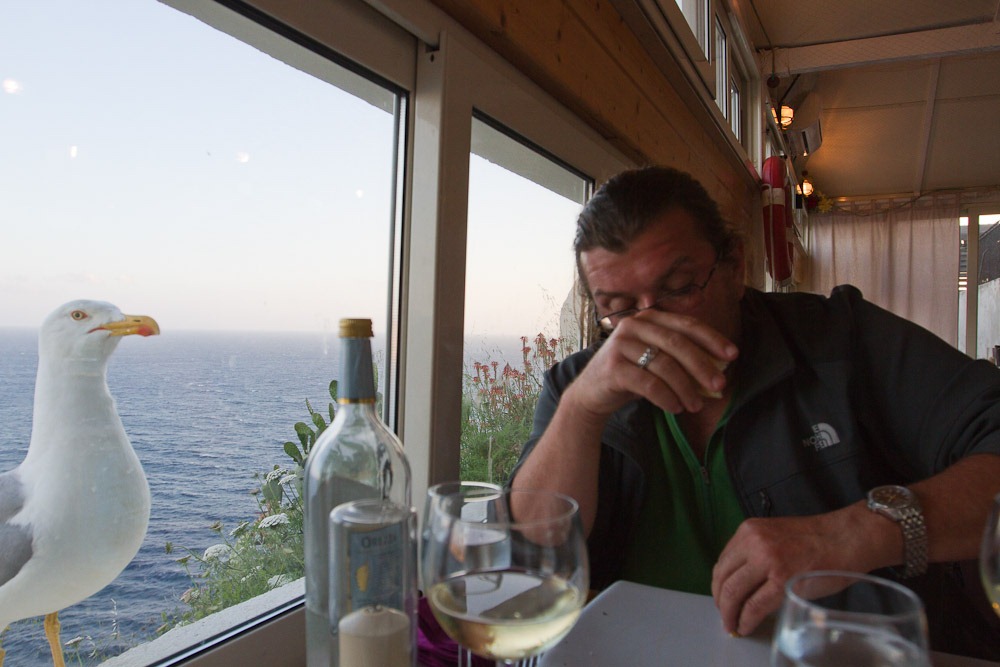 Da wir zumindest einmal in Bonifacio essen gehen wollten, hatten wir die ganze Zeit schon nach einem geeigneten Platz Ausschau gehalten. Nicht dass es da keine große Auswahl gäbe, aber es sollte ein Platz sein, der Essen macht, welches wir selber nicht so einfach machen können und gleichzeitig wirklich etwas Besonderes ist. Wir haben dann am Ende das Restaurant “Les Terasses d’ Aragon” gefunden, welches über den gleichnamigen Stufen, die direkt in den Fels gehauen zum Wasser führen, thront. Ein sehr schöner Platz, der zwar recht teuer, aber auch recht gut ist. Leider für unseren Geschmack und Magen mittlerweile, wie so oft in den Plätzen hier (das hatten wir auch in Alghero gemerkt), viel zu viel Fett und Öl, aber die Langusten-Ravioli waren wirklich wunderbar!