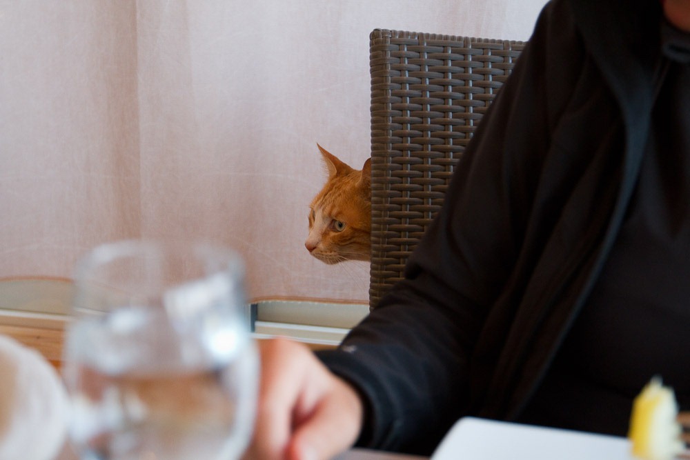 Er (Sie?) wurde dann auch richtig aufdringlich, als ich genüsslich mein Brot in die Soße getunkt habe. Was ein fieser Gesichtsausdruck…