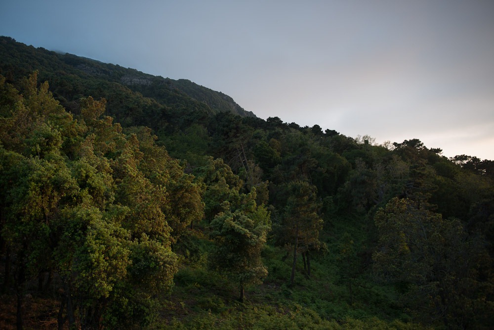 Abendstimmung über den Steineichen-Hügeln