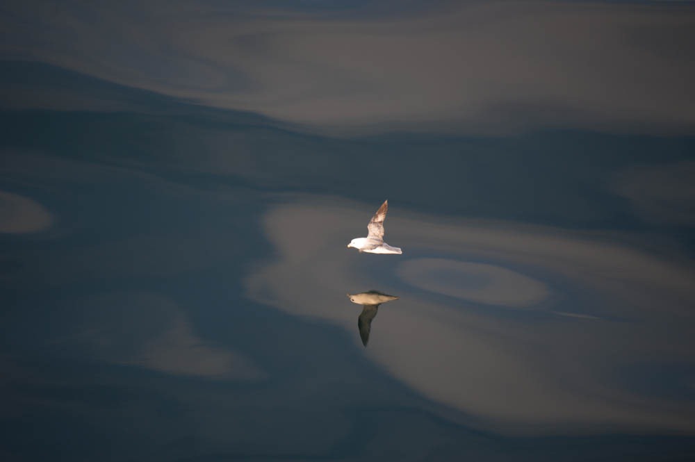 Fast schon spiegelglattes Wasser – sicherlich eine Besonderheit im Nordatlantik bei 65° Nördlicher Breite