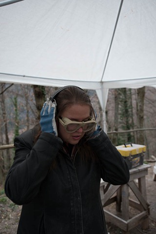 Erst einmal die groben Stücke weghauen (mit der Fräse angeschnitten)
