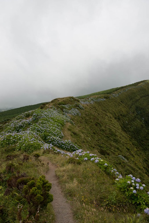 Clouds were streaming in all the time and it was rather chilly, but you had some view and this made it all good for a walk. So, off we went to circle the caldera which is only 8 km and quite easy going (+/- 120 m).