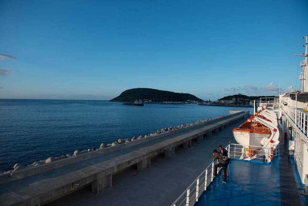 Getting up at 06:00 might be usual for some people, for us it is nothing we like and therefore there has to be a very good reason to do so… For us this was the ferry to Sao Miguel which only leaves in the morning or evening so morning it was… Waiting at the harbour for the ferry to arrive and finally – there she comes ![]()