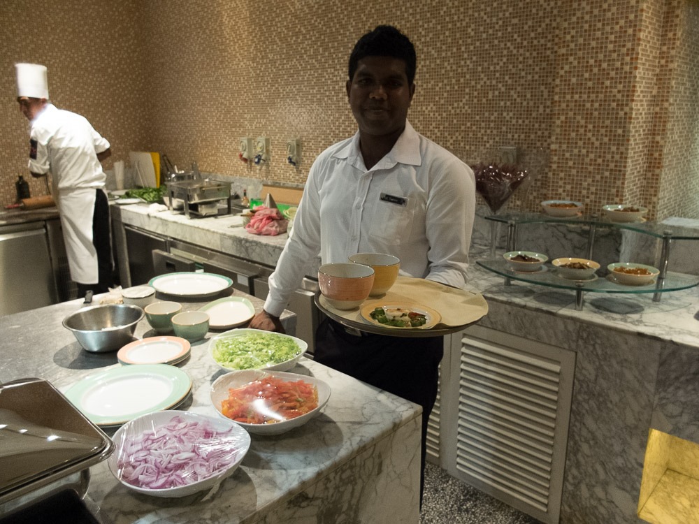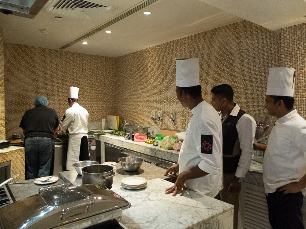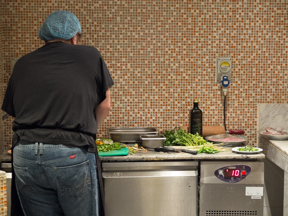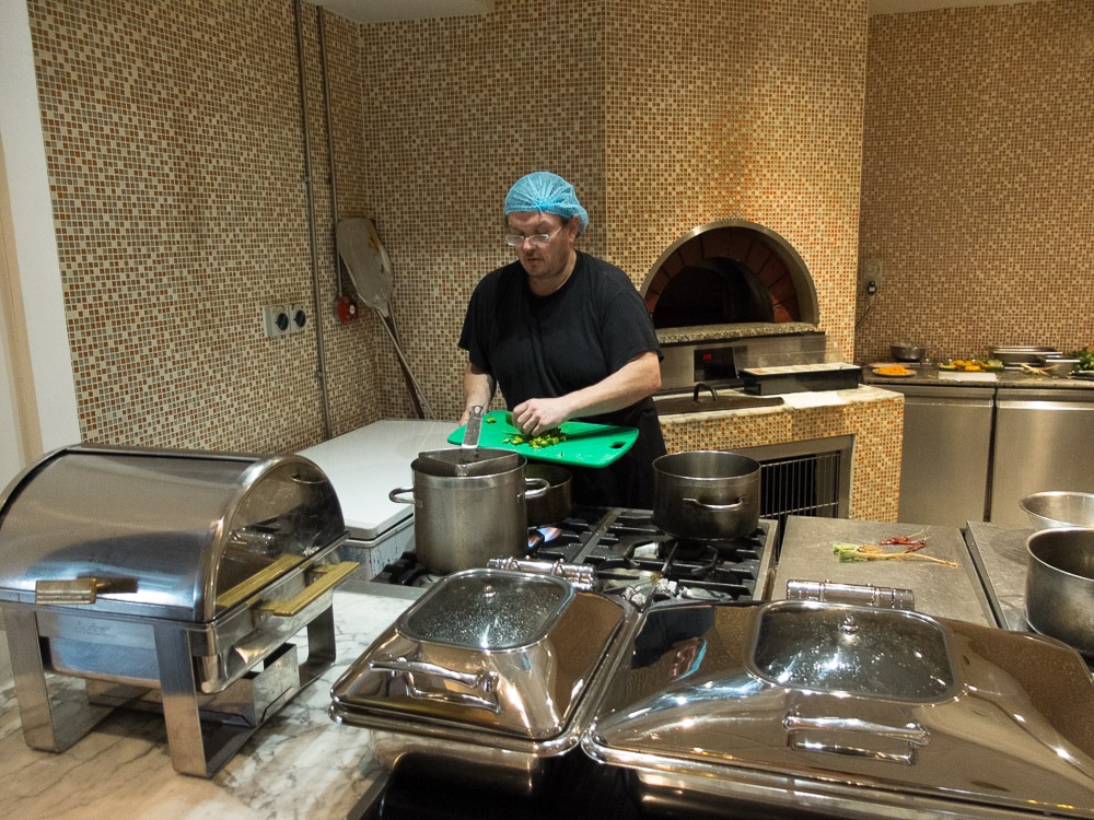 Approaching the main restaurant (and kitchen) I was quite unpleasantly surprised as they told me to cook at the show station at the end. No problem with that in general – only that I have to have everything finished in a rather short time…
