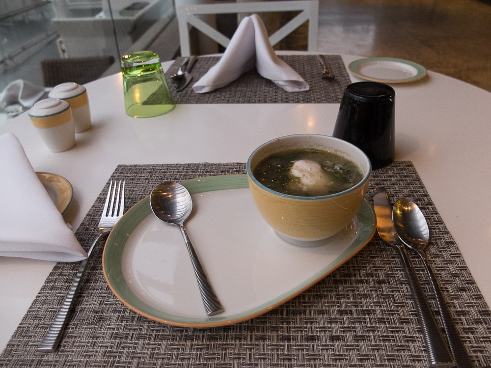 Finally the first course was ready… Hot fish soup with slices of fish fillet and an egg