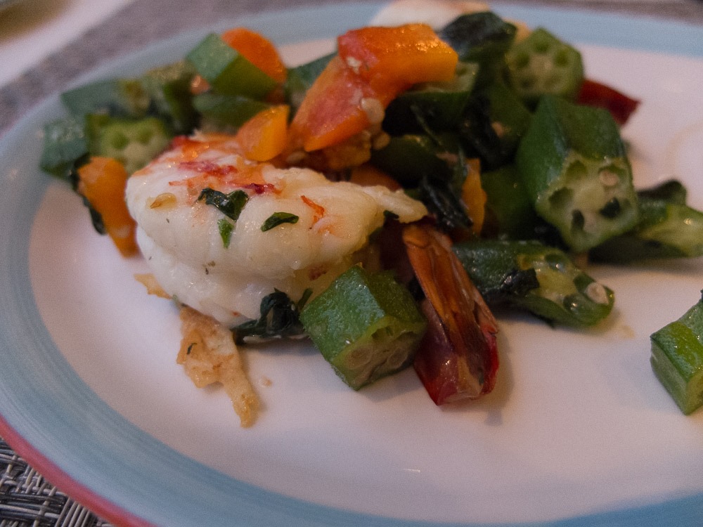 Followed by ladyfinger (okra) salad with papaya and prawns
