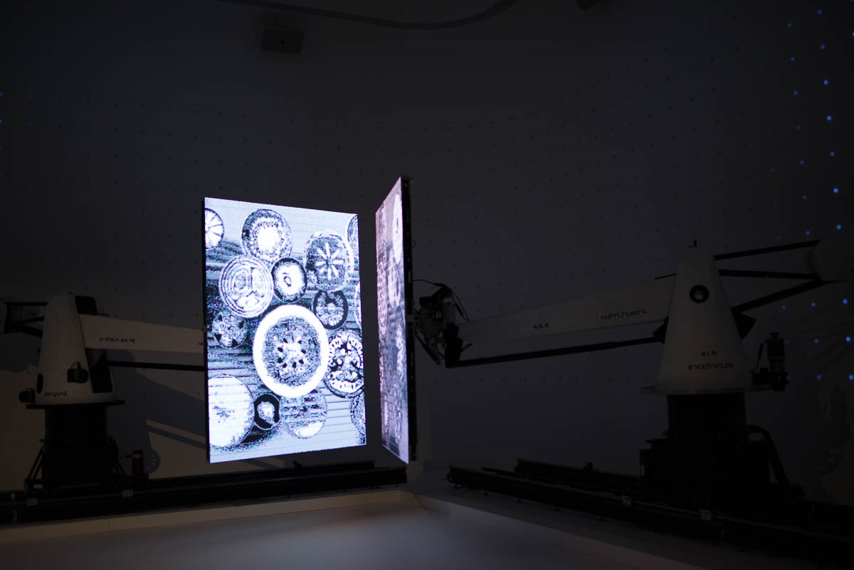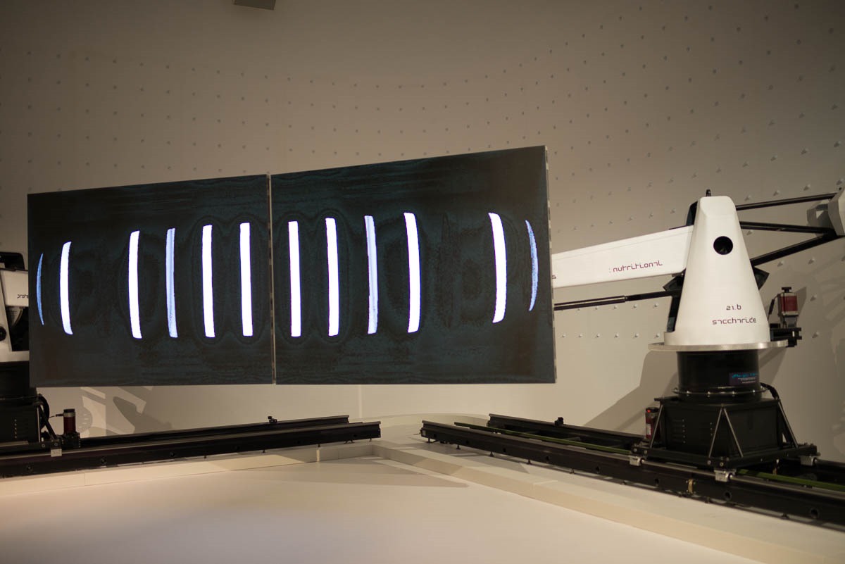 So the two robots worked in sync to show the panels