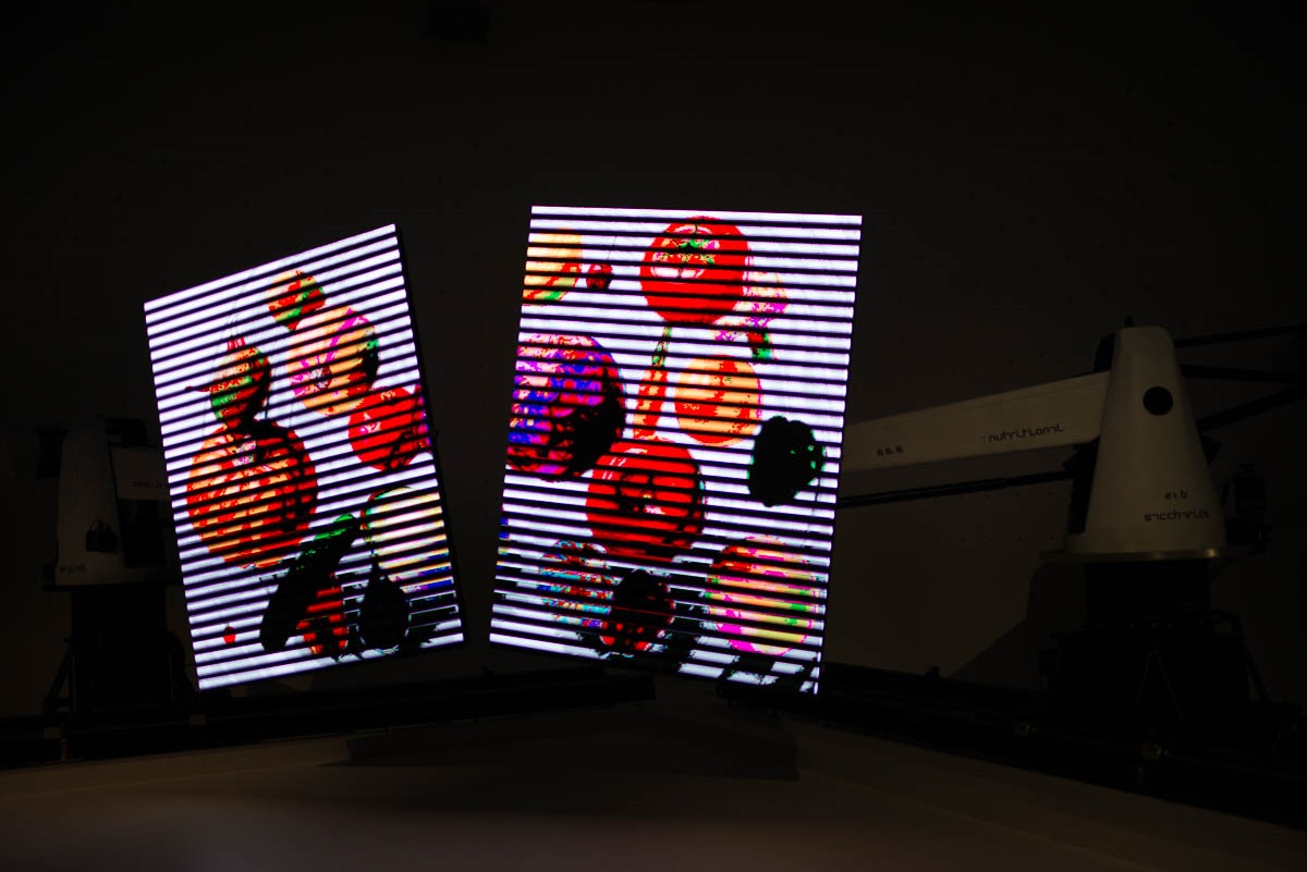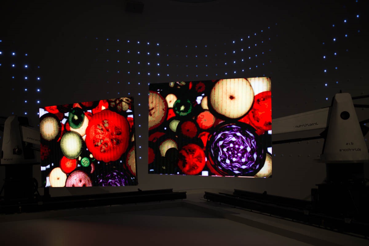 The huge LCD panel was illuminated with different fruit, spices, food, etc.
