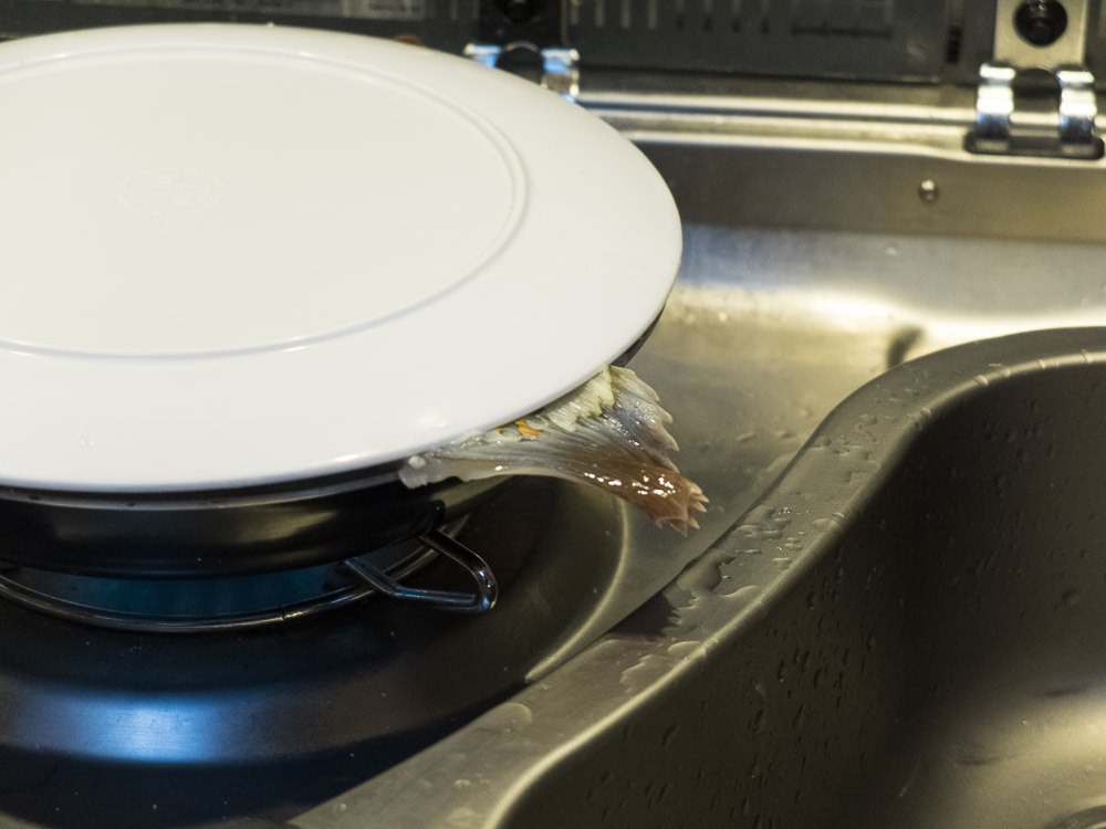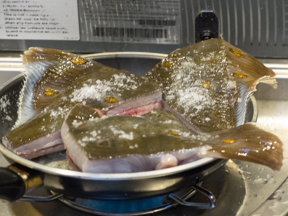 The plaice is thrown away normally (as they have no quota for it), so we got it for free (in principle). Actually I bought a mackerel but they had no price for that either – but when seeing the place I changed my mind…